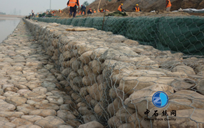 生態(tài)石籠網(wǎng)簡介:石籠網(wǎng)(又名格賓網(wǎng)/石籠擋土墻)是一種生態(tài)格網(wǎng)結(jié)構(gòu)。它有高抗腐蝕、高強(qiáng)度、具有延展性的低碳鋼絲或者鍍鋅、包覆PVC的鋼絲使用機(jī)械編織而成,使用該網(wǎng)制作而成的箱型結(jié)構(gòu)就是石籠網(wǎng),或石籠網(wǎng)雷諾護(hù)墊。根據(jù)ASTM和EN標(biāo)準(zhǔn),所使用的低碳鋼絲直徑根據(jù)工程設(shè)計(jì)要求而不同。石籠網(wǎng)片的邊緣線直徑一般要大于網(wǎng)線直徑。其雙線絞合部分的長度不得小于50mm.以保證絞合部分鋼絲的金屬鍍層和PVC鍍層不受破壞。