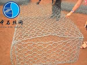 鋅鋁合金石籠網是一種生態格網結構。石籠網由高抗腐蝕、高強度、具有延展性的低碳鋼絲或者包覆PVC的以上鋼絲使用機械編織而成,使用該網制作而成的箱型結構就是石籠。根據ASTM和EN標準,所使用的低碳鋼絲直徑根據工程設計要求而不同。一般介于2.0-4.0mm之間,鋼絲的抗拉強度不少于38kg/m2,金屬鍍層重量一般高于245g/m2石籠網片的邊緣線直徑一般要大于網線直徑。其雙線絞合部分的長度不得小于50mm。以保證絞合部分鋼絲的金屬鍍層和PVC鍍層不受破壞。
